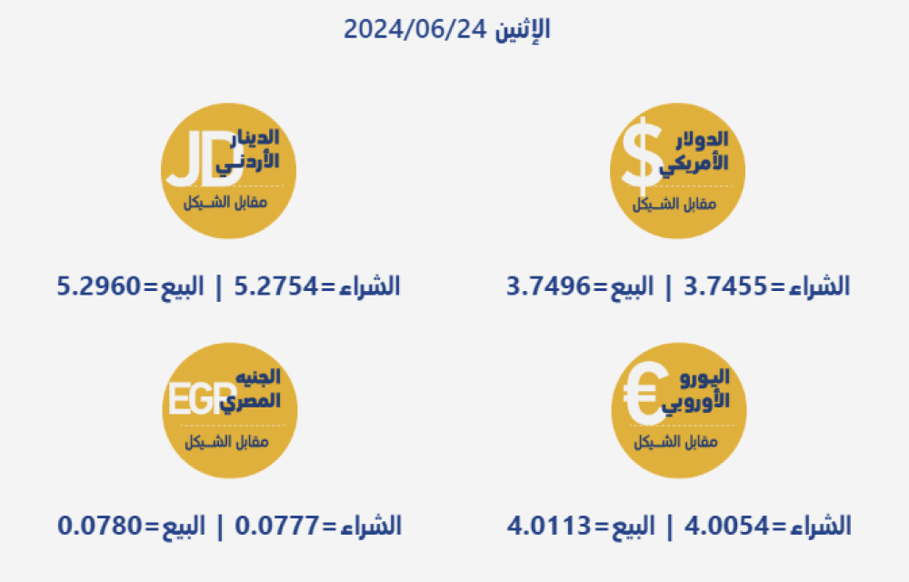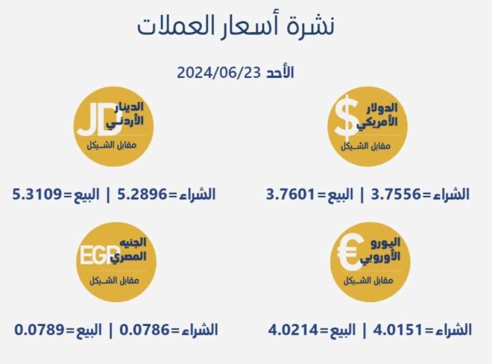 أسعار العملات المتداولة في السوق مقابل الشيكل