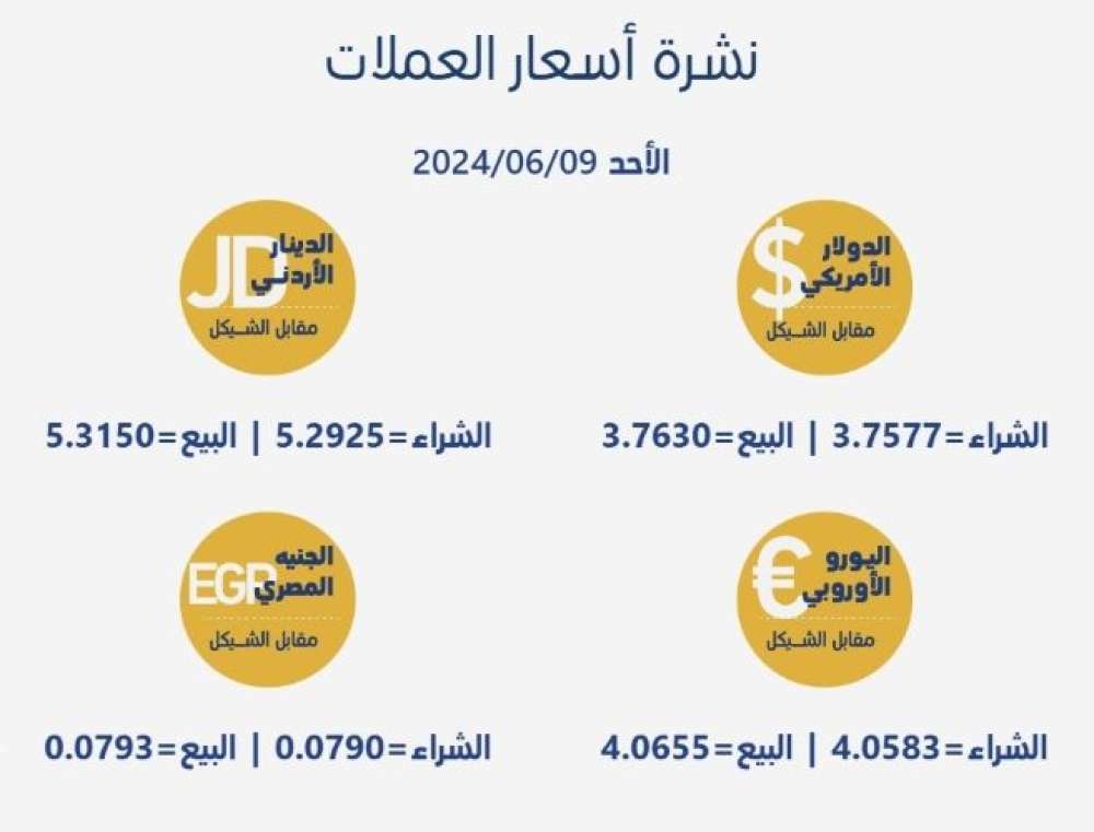 أسعار العملات المتداولة في السوق المحلية مقابل الشيكل