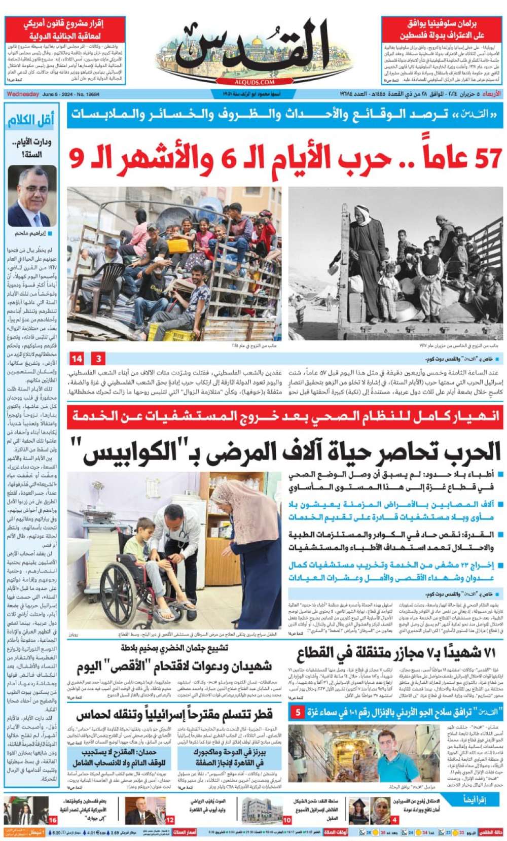 الاحتلال يفرج عن المعتقلتين أمان نافع وبراءة عودة الاحتلال يقتحم قرية مردا شمال سلفيت رئيس الوزراء يترأس اجتماعا لتعزيز وتطوير الاعتماد على الطاقة البديلة 111 منظمة مجتمع مدني تدين حملة الاحتلال الهادفة لاستمرار منع الصحفيين من تغطية العدوان على غزة الاحتلال يقتحم مدينة قلقيلية عمان: توقيع مذكرة تفاهم بين "التنمية الاجتماعية" ونظيرتها الأردنية مستعمرون يهدمون 11 "بركسا" غرب أريحا ثلاثة شهداء في قصف للاحتلال على مخيم المغازي جيش الاحتلال يستهدف عدة بلدات في البقاع والجنوب اللبناني طولكرم: وقفة دعم واسناد مع المعتقلين في سجون الاحتلال مسؤول أممي: الفلسطينيون يتعرضون يوميا لسفك دماء غير مسبوق وندعو للمساءلة ارتفاع حصيلة العدوان على غزة إلى 36550 شهيدا و82959 مصابا تشييع جثمان الشهيد أحمد الخضري إلى مثواه الأخير في مخيم بلاطة في ذكرى النكسة.. تتجدد النكبة أبرز عناوين الصحف الإسرائيلية
