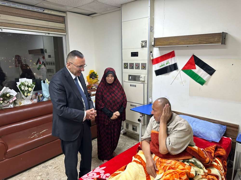 السفير الرويضي يعود جرحى ومرضى قطاع غزة في بغداد