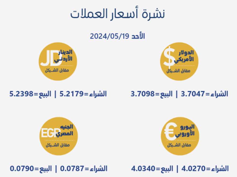أسعار العملات العملات المتداولة في السوق المحلية مقابل الشيقل