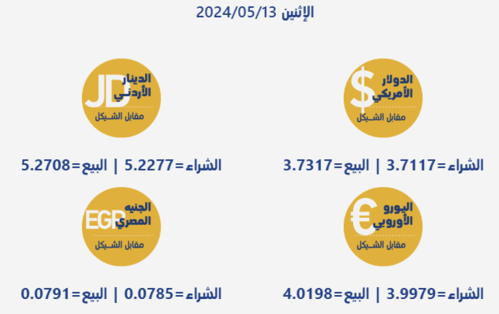 أسعار صرف العملات المتداولة مقابل الشيكل