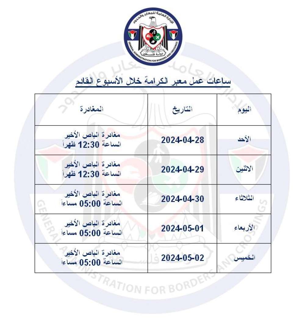 "المعابر والحدود": تعديل على ساعات عمل معبر الكرامة للأسبوع المقبل
