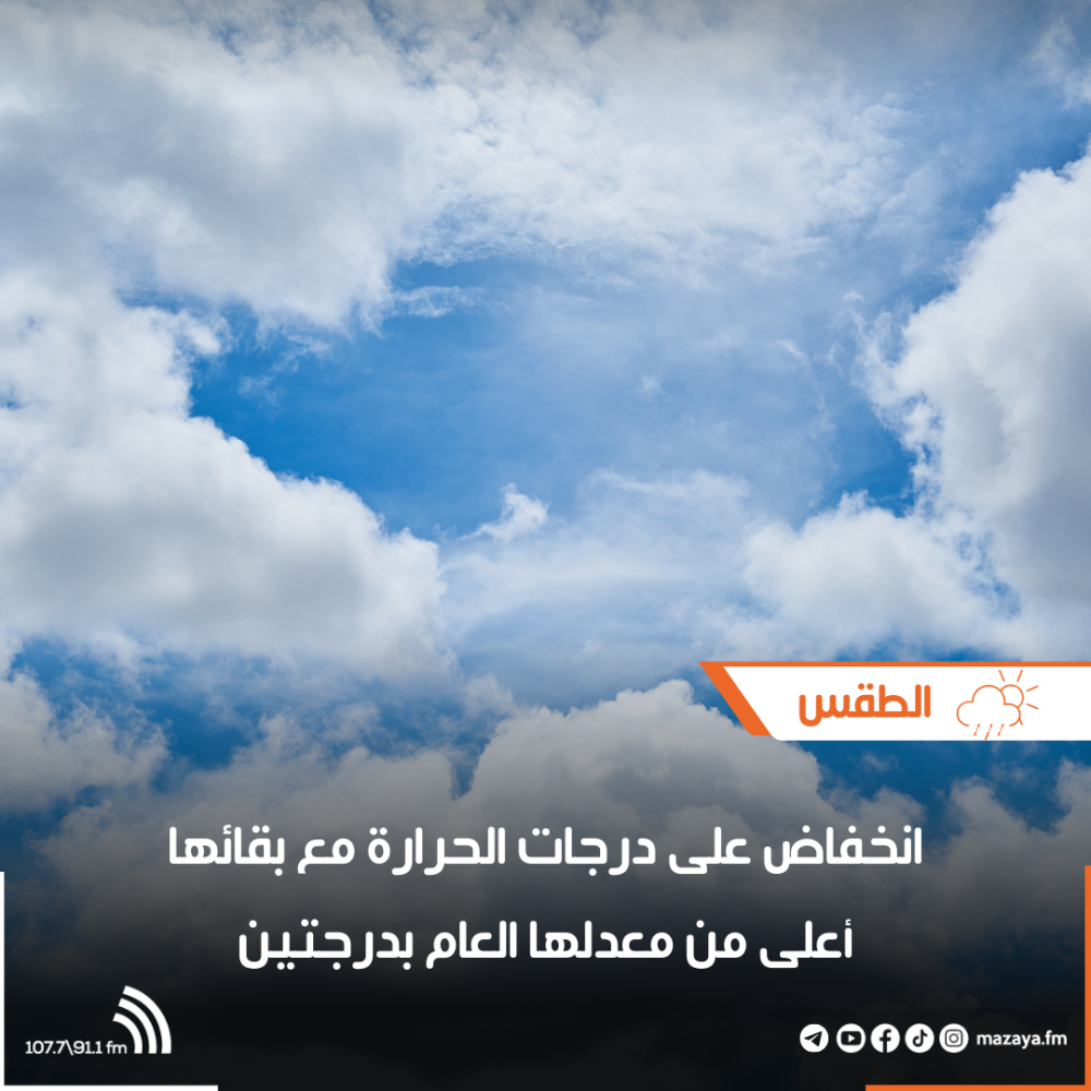 الطقس: انخفاض على درجات الحرارة مع بقائها أعلى من معدلها العام بدرجتين