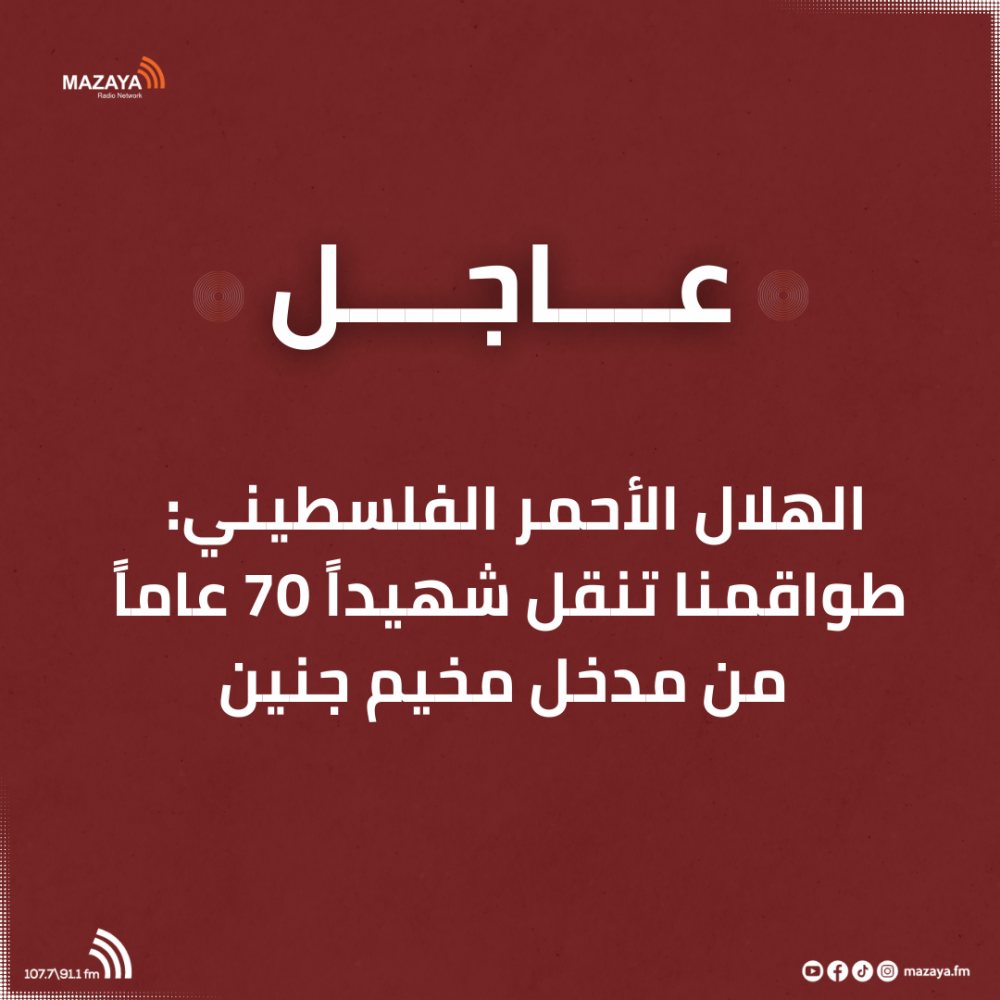 15 يومًا من العدوان والقتل والتدمير في جنين ومخيمها الاحتلال يعتقل شابين وستة أطفال خلال اقتحام بيتونيا ومخيم الجلزون الاحتلال يطلق النار على شاب قرب حاجز تياسير شرق طوباس حالة الطقس: انخفاض طفيف على درجات الحرارة منخفض جوي الأربعاء الاحتلال يجبر سكان البنايات المشرفة على مخيم جنين على إخلائها الاحتلال يواصل عدوانه على مدينة طولكرم ومخيمها لليوم الثامن: نزوح قسري ونسف منازل واعتقالات وسط أوضاع انسانية صعبة لليوم الثاني: الاحتلال يحاصر مخيم الفارعة وبلدة طمون وسط اعتقالات وتجريف للبنية التحتية واجبار السكان على النزوح مع دخول عدوان الاحتلال على جنين ومخميها يومه الـ14: 25 شهيدا واصابات واعتقالات ونسف عشرات المنازل وسط نزوح قرابة 15 ألف مواطن حالة الطقس: ارتفاع طفيف آخر على درجات الحرارة اليوم الاثنين الاحتلال يدمر مركبات المواطنين عند مدخل مخيم الفارعة وفي بلدة طمون استشهاد طفل وإصابات في قصف الاحتلال شارع الرشيد شهيد مسن في مخيم جنين يرفع عدد الشهداء جراء عدوان الاحتلال المتواصل إلى 25 شهيدا تعطل 2637 قضية جراء الإغلاق القسري لمجمعات المحاكم في جنين وطولكرم الاحتلال يواصل عدوانه على طولكرم ومخيمها لليوم السابع إصابة مواطن برصاص الاحتلال بحي الجابريات من مدينة جنين