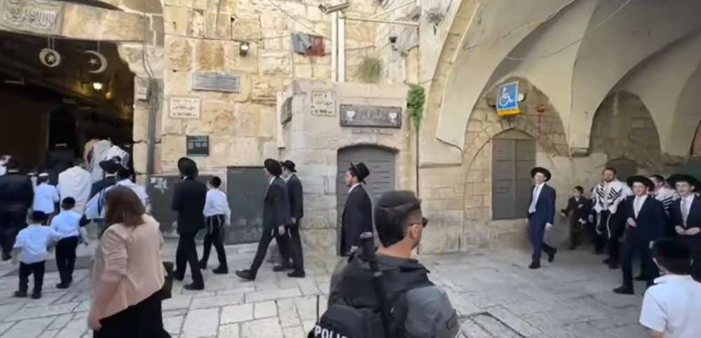 مستوطنون يؤدون طقوسا تلمودية في البلدة القديمة من مدينة القدس