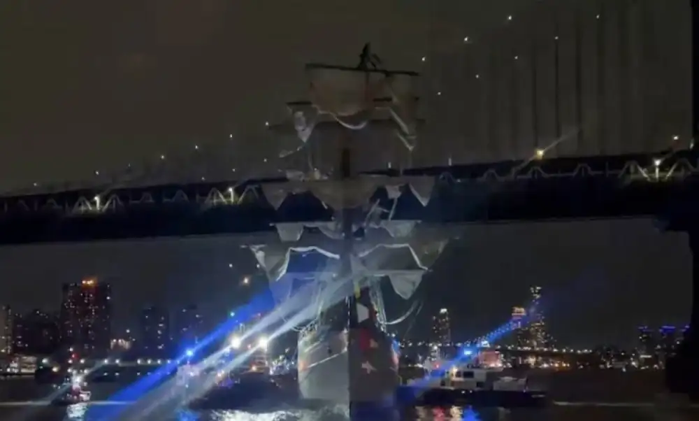 اصطدام سفينة حربية ضخمة تابعة للبحرية المكسيكية بجسر بروكلين