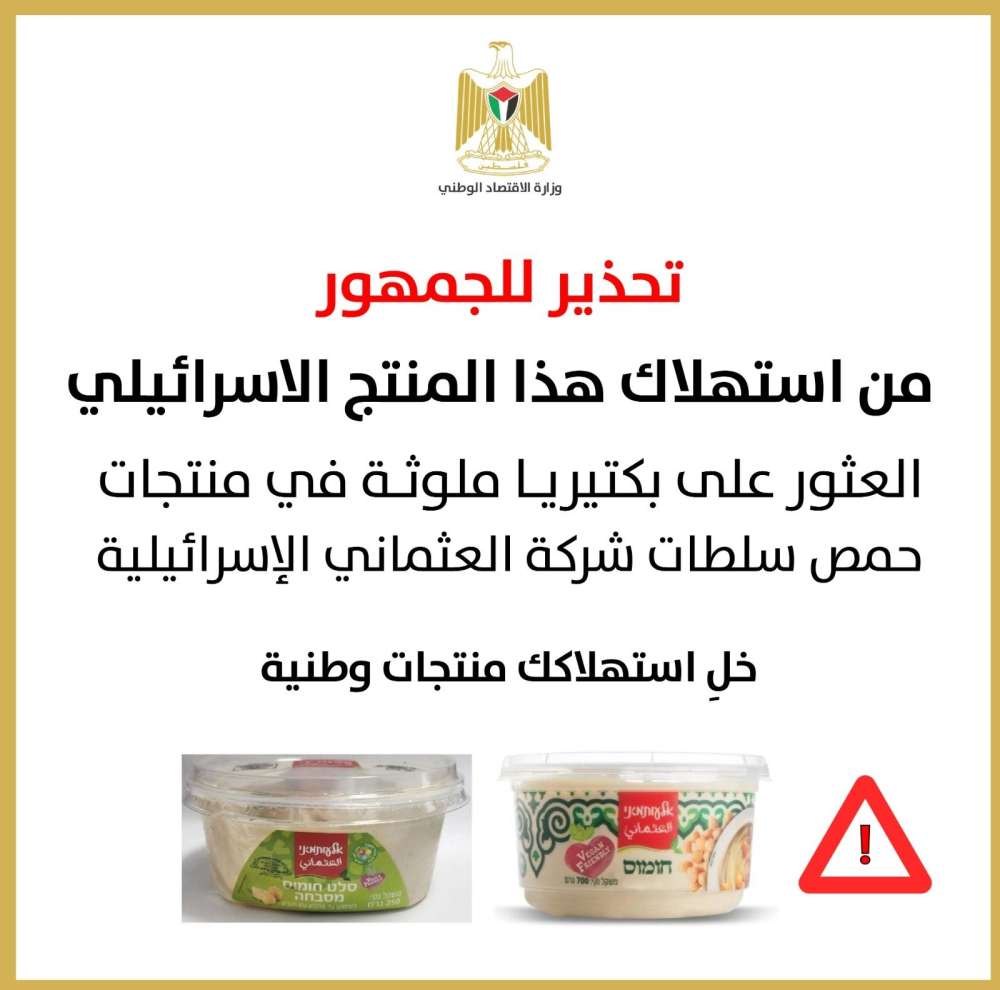 "الاقتصاد الوطني" تحظر تسويق حمص وسلطات إسرائيلية ملوثة