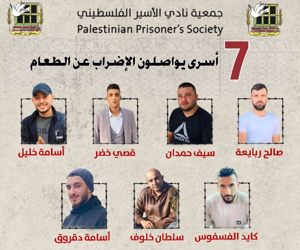 ارتفاع عدد الأسرى المضربين عن الطعام إلى سبعة