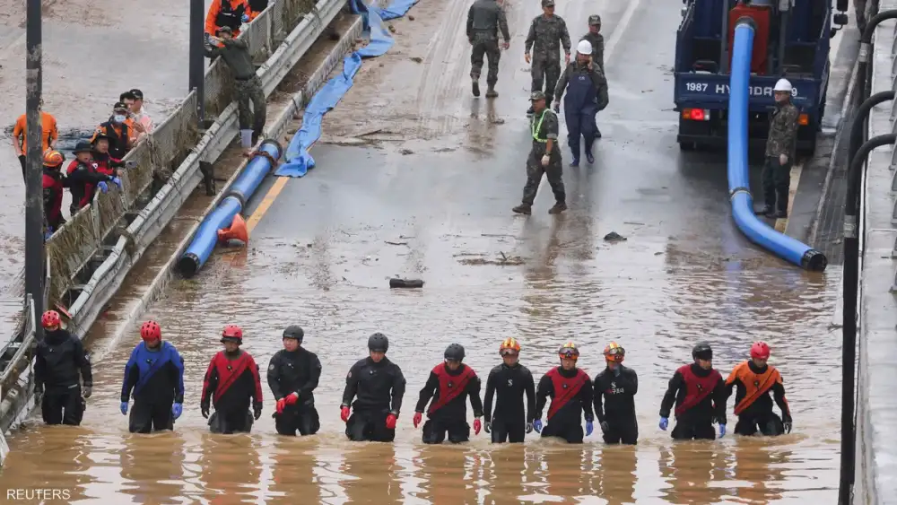 القتلى 37.. انتشال 9 جثث من نفق غمرته فيضانات كوريا الجنوبية