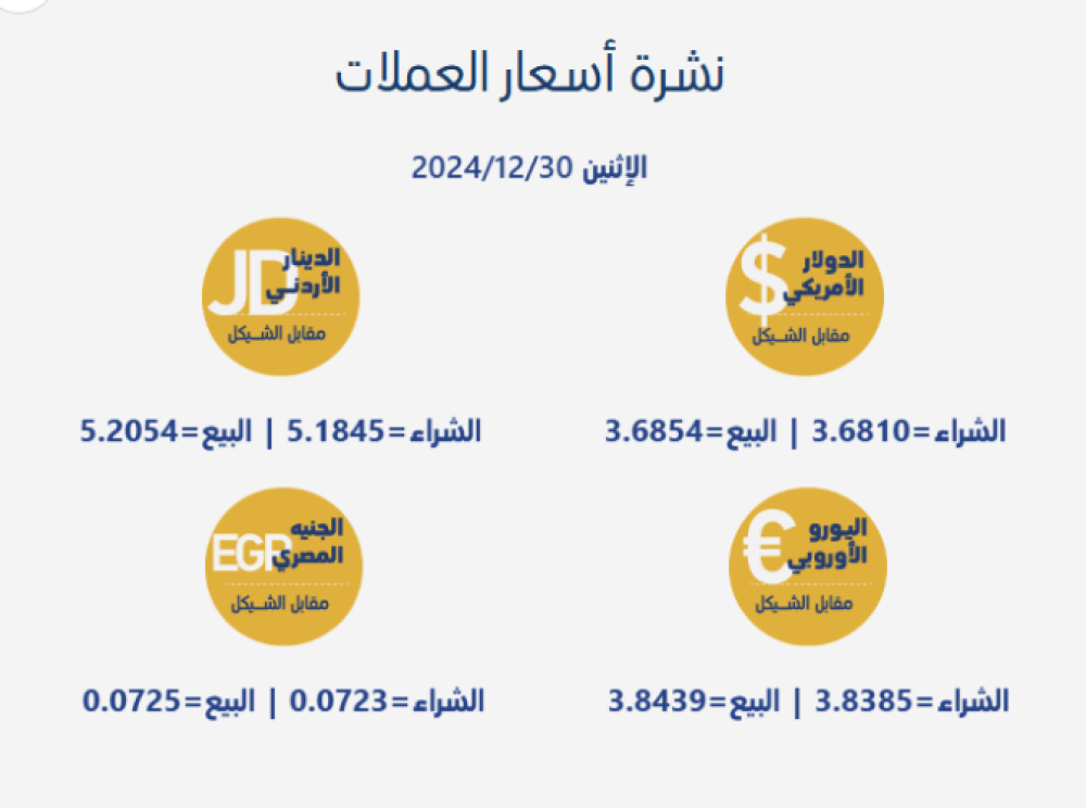 أسعار صرف العملات المتداولة في السوق الفلسطينية
