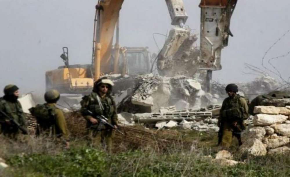 الاحتلال يهدم كوخا خشبيا ومسبحا ويجرف أشجارا حرجية وسلاسل حجرية جنوب الخليل