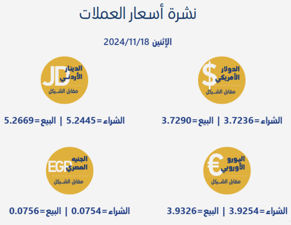 سعر صرف العملات مقابل الشيقل