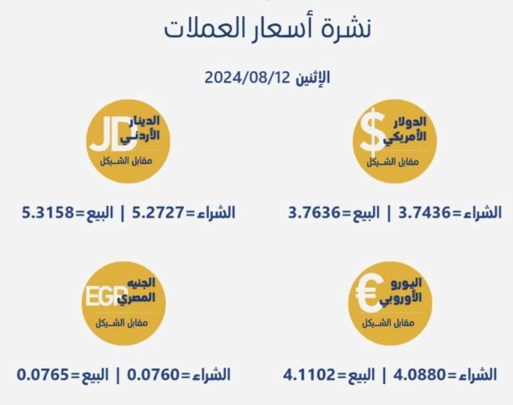 أسعار العملات المتداولة في السوق مقابل الشيقل بحسب سلطة النقد المزيد
