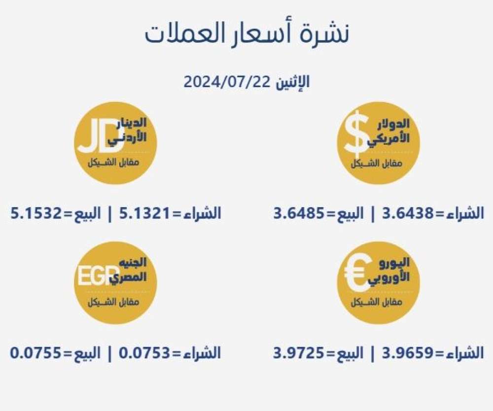 أسعار العملات مقابل الشيقل في أسواق فلسطين اليوم المزيد