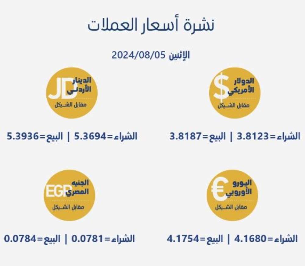 أسعار صرف العملات بحسب سلطة النقد الفلسطينية